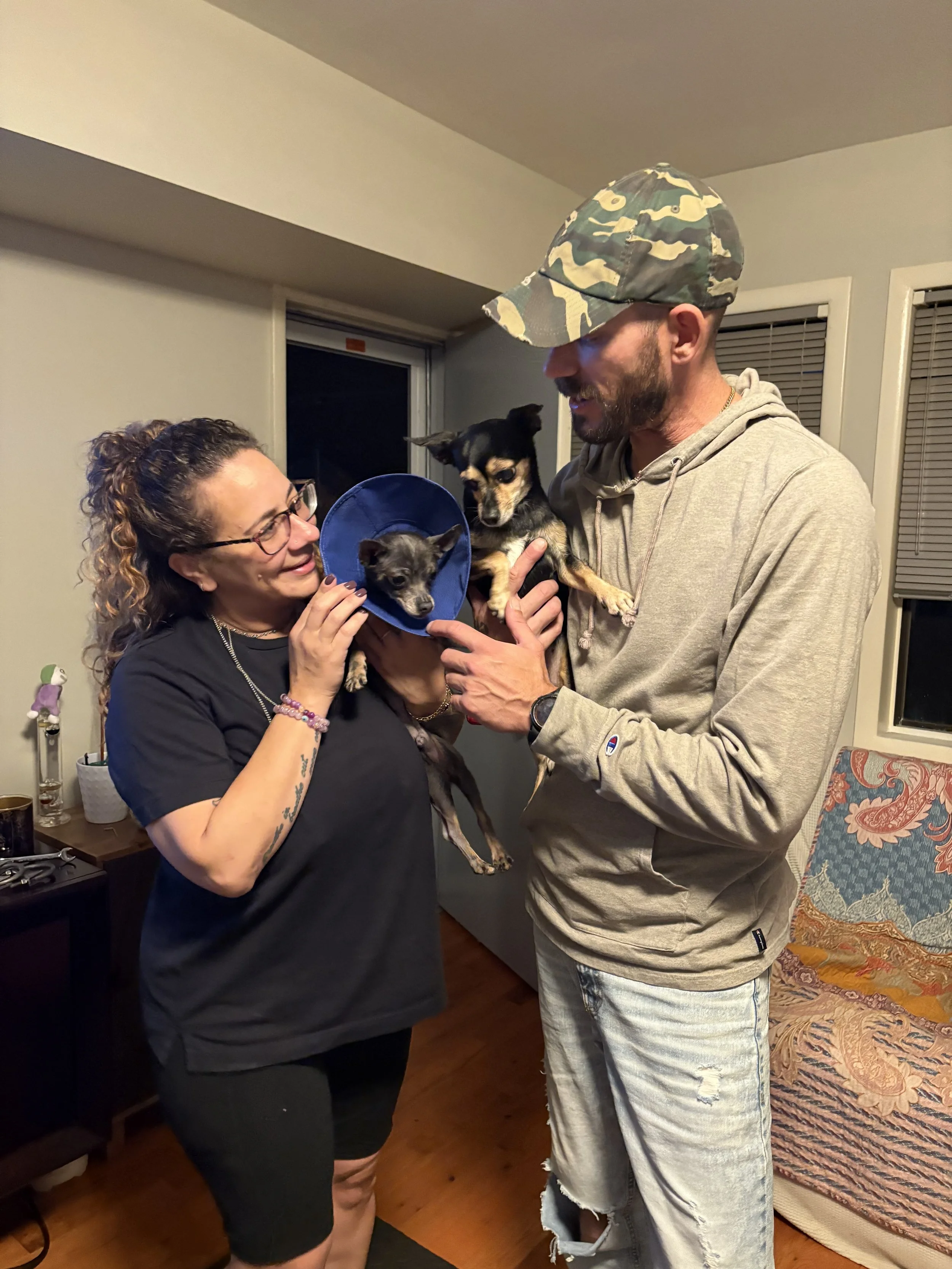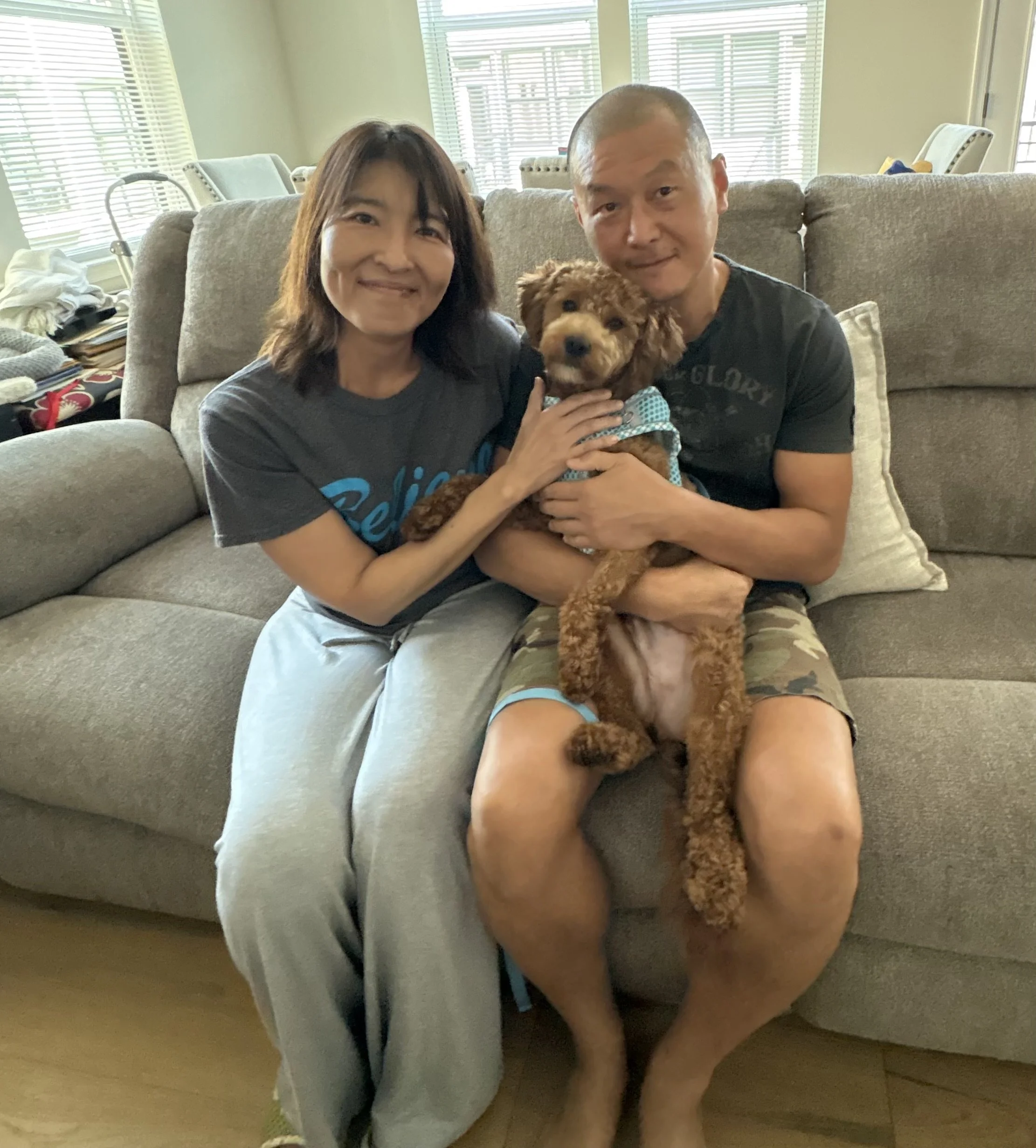 Benji (now Charlie) was a foster fail! His foster parents lasted 1 hour and decided to adopt him! He now has a poodle sister and 2 poodle cousins!
